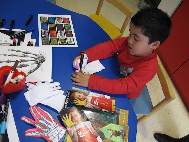 Yikes! Some of the younger children thought the pictures were a little scary, but lots of the children wanted to have a go at drawing the muscles and bones onto their gloves.